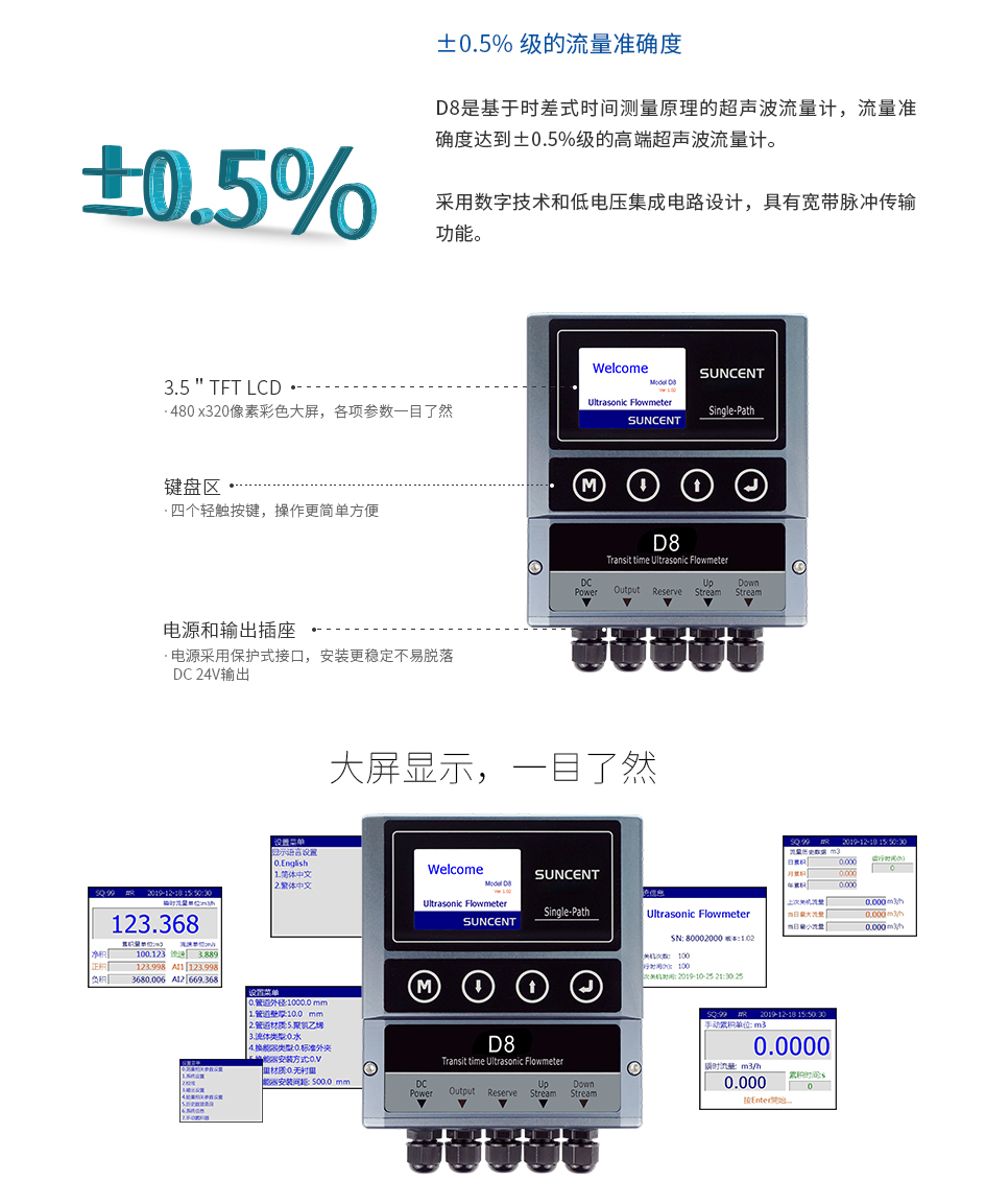 D8是基于時(shí)差式時(shí)間測(cè)量原理設(shè)計(jì)的超聲波流量計(jì)