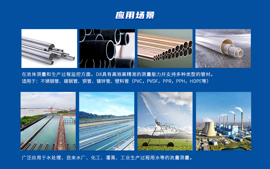 測(cè)量管材:不銹鋼管、碳鋼管、銅管、鍍鋅管、塑料管(PVC,PVDF,PPR,PPH,HDPE等)等