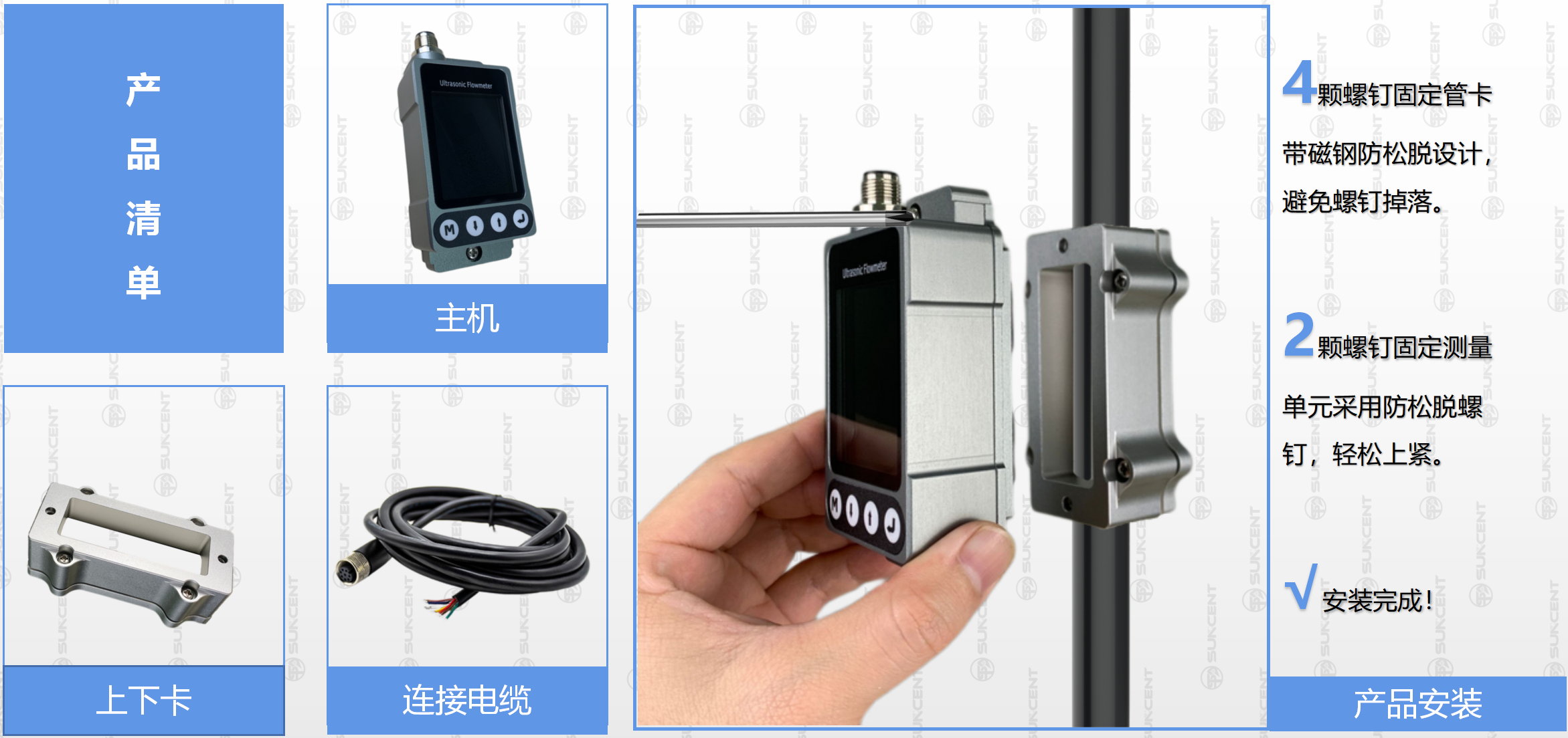 X5具有操作簡(jiǎn)易、外觀精致的特點(diǎn)。首先,X5在結(jié)構(gòu)設(shè)計(jì)上使用了圓形磁鋼,實(shí)現(xiàn)安裝時(shí)自動(dòng)卡合,從安裝到測(cè)量,只需2-3分鐘即可完成。其次,X5應(yīng)用目前世界先進(jìn)的時(shí)間測(cè)量芯片,時(shí)間分辨率達(dá)到50ps,更是采用目前流行的IPS LCD顯示屏,在光線不足的環(huán)境下也能實(shí)現(xiàn)輕松讀數(shù),同時(shí)還有全新的流量波形圖示。最后,選單結(jié)構(gòu)簡(jiǎn)單,操作者通過(guò)4個(gè)按鍵可輕松設(shè)置或修改參數(shù)。